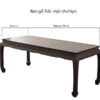 Mặt bàn sử dụng gỗ Đinh Chun, thớ gỗ mịn, màu sáng tự nhiên, vân gỗ hài hòa giúp cân bằng thị giác với khung Tử Đàn sẫm màu. Sự phối hợp này tạo nên tổng thể vừa sang trọng, vừa thanh thoát, không nặng nề.