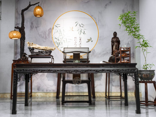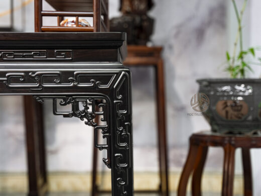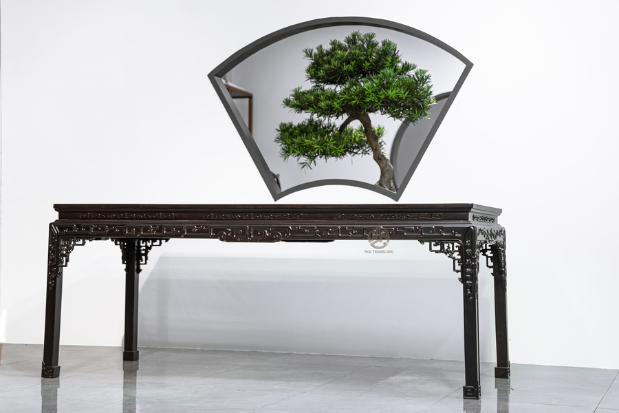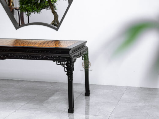 Bàn khung Tử Đàn mặt Đinh Chun là sự kết hợp tinh tế giữa chất liệu gỗ quý và thiết kế chuẩn mực Á Đông, mang đến giá trị sử dụng lâu dài và giá trị thẩm mỹ vượt thời gian.