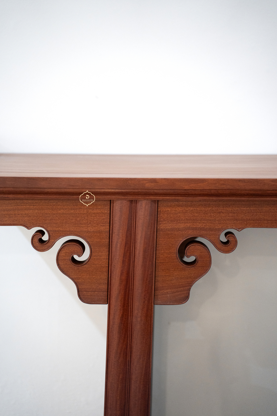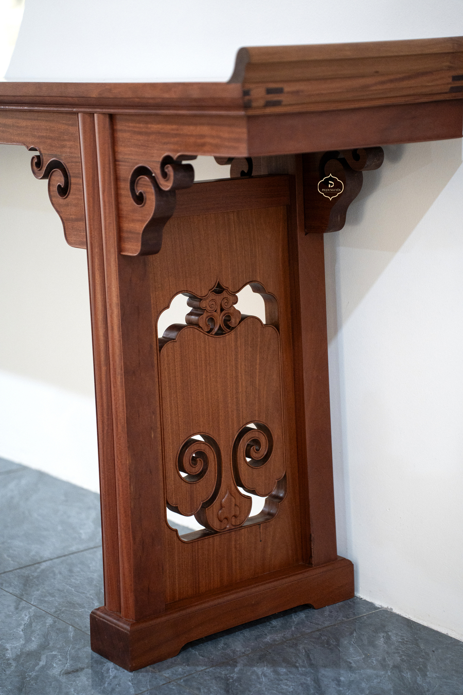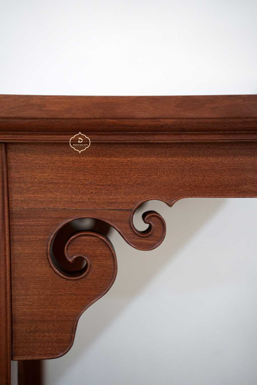Bàn tiếu Hương gỗ Nam Mỹ là mẫu bàn tiếu cỡ lớn, nổi bật bởi chiều dài ấn tượng, chất gỗ đẹp và thiết kế mang đậm tinh thần Á Đông trang nhã, phù hợp với những không gian rộng và yêu cầu điểm nhấn sang trọng.