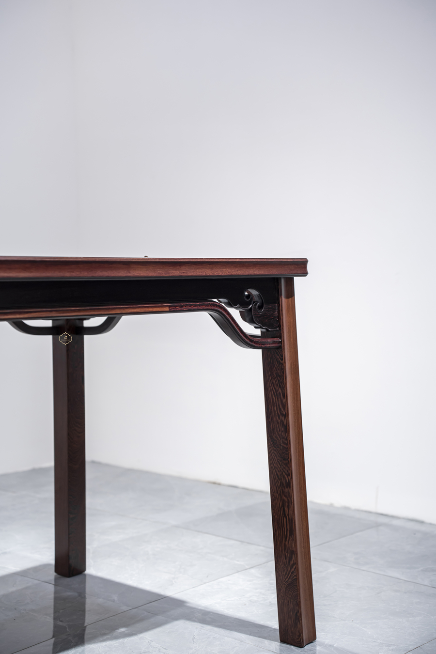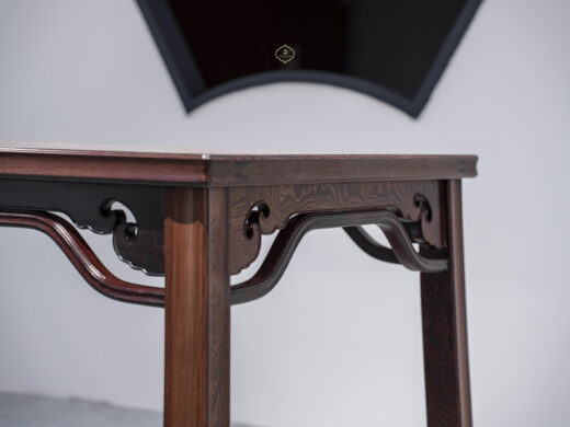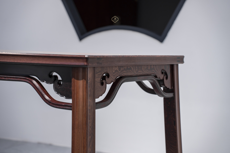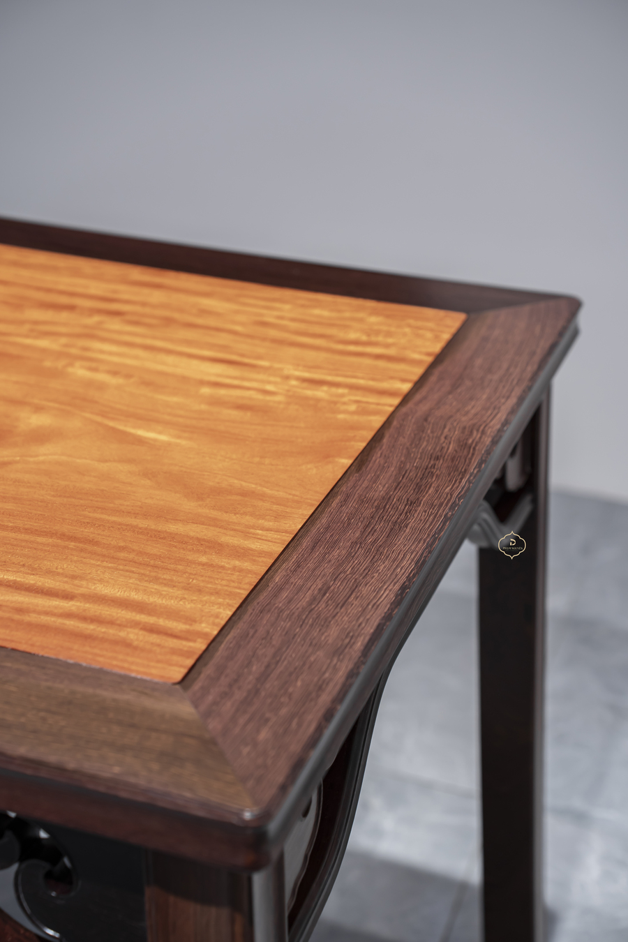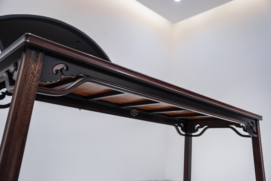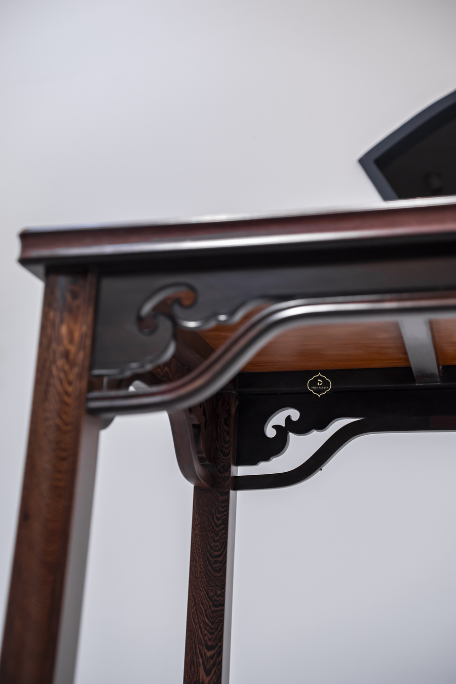 Thiết kế bàn theo dáng dài, chân thon gọn, các chi tiết bo và nối được xử lý mềm mại, tạo sự thanh thoát cho tổng thể. Bàn không chạm khắc cầu kỳ, nhưng chính sự tiết chế này giúp sản phẩm dễ phối với nhiều phong cách nội thất khác nhau – từ truyền thống nhẹ đến hiện đại Á Đông.