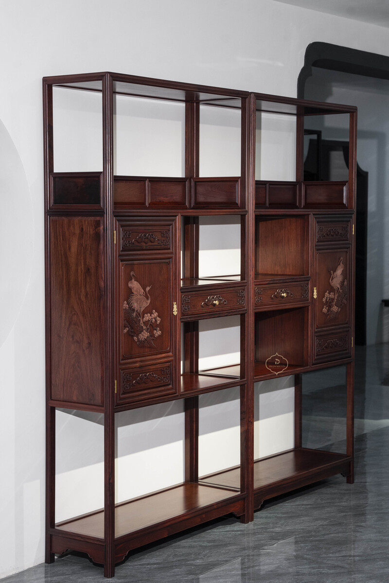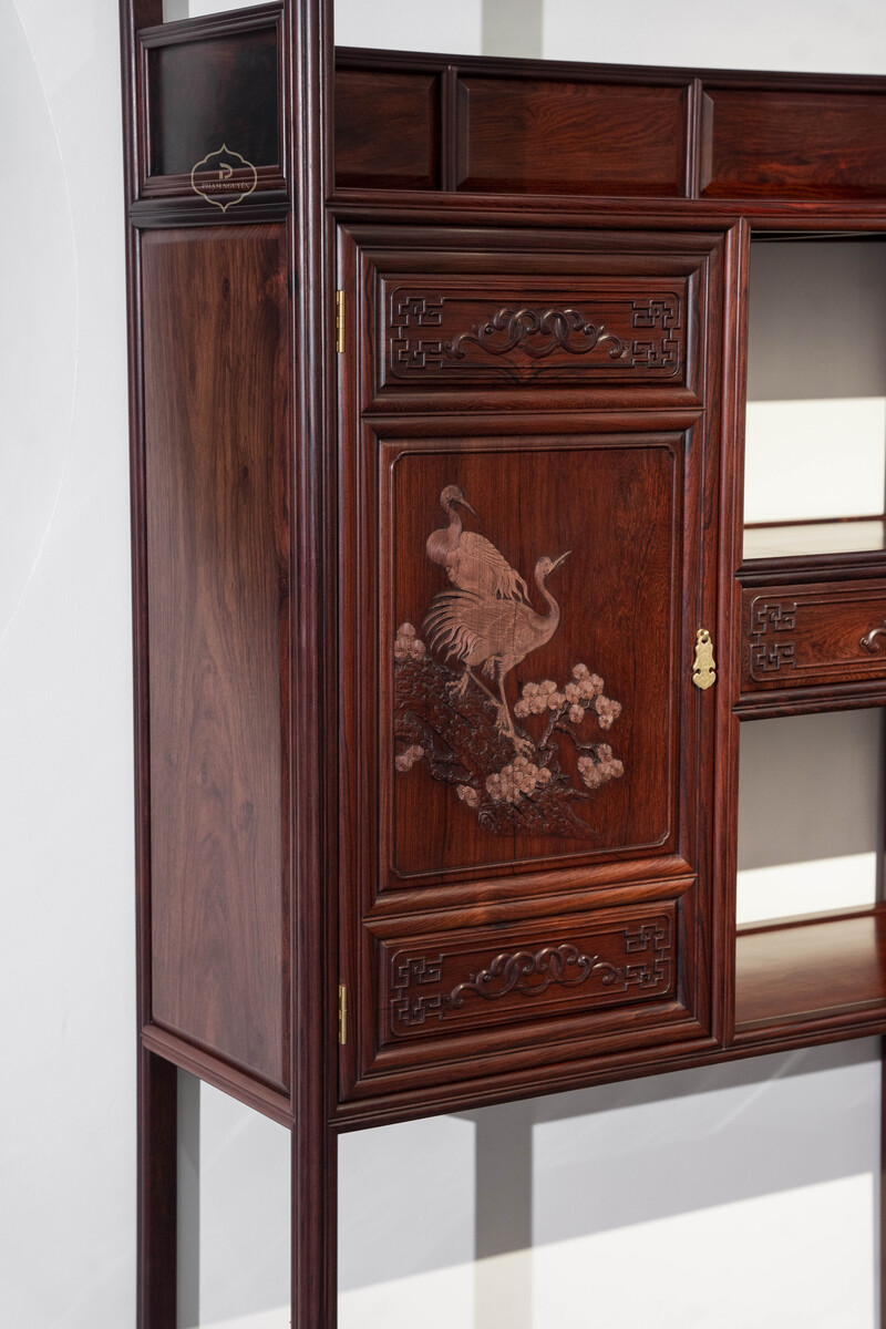 Cặp tủ Tùng – Hạc Diên Niên gỗ Cẩm là dòng nội thất truyền thống cao cấp, nổi bật bởi chất gỗ quý, đường chạm khắc tinh xảo và bố cục dáng đứng thanh nhã, mang đậm giá trị thẩm mỹ và phong thủy Á Đông.