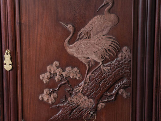 • Cặp tủ Tùng – Hạc Diên Niên gỗ Cẩm chạm khắc thủ công