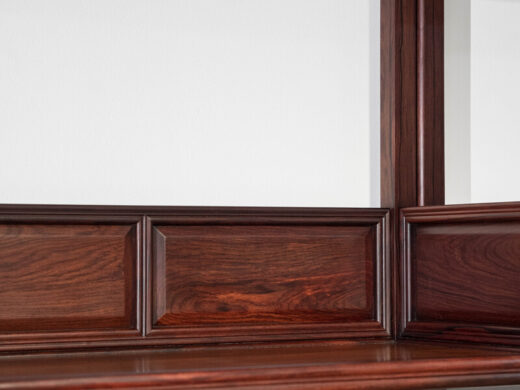Sản phẩm được chế tác từ gỗ Cẩm tự nhiên, loại gỗ có độ chắc nặng cao, thớ mịn, vân gỗ rõ và khả năng ổn định tốt. Gỗ có sắc nâu trầm đậm, càng sử dụng lâu càng lên màu sâu, bề mặt bóng tự nhiên, tạo cảm giác sang trọng và giá trị bền vững theo thời gian.