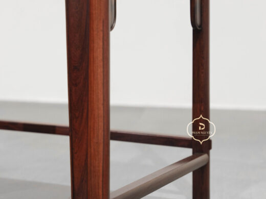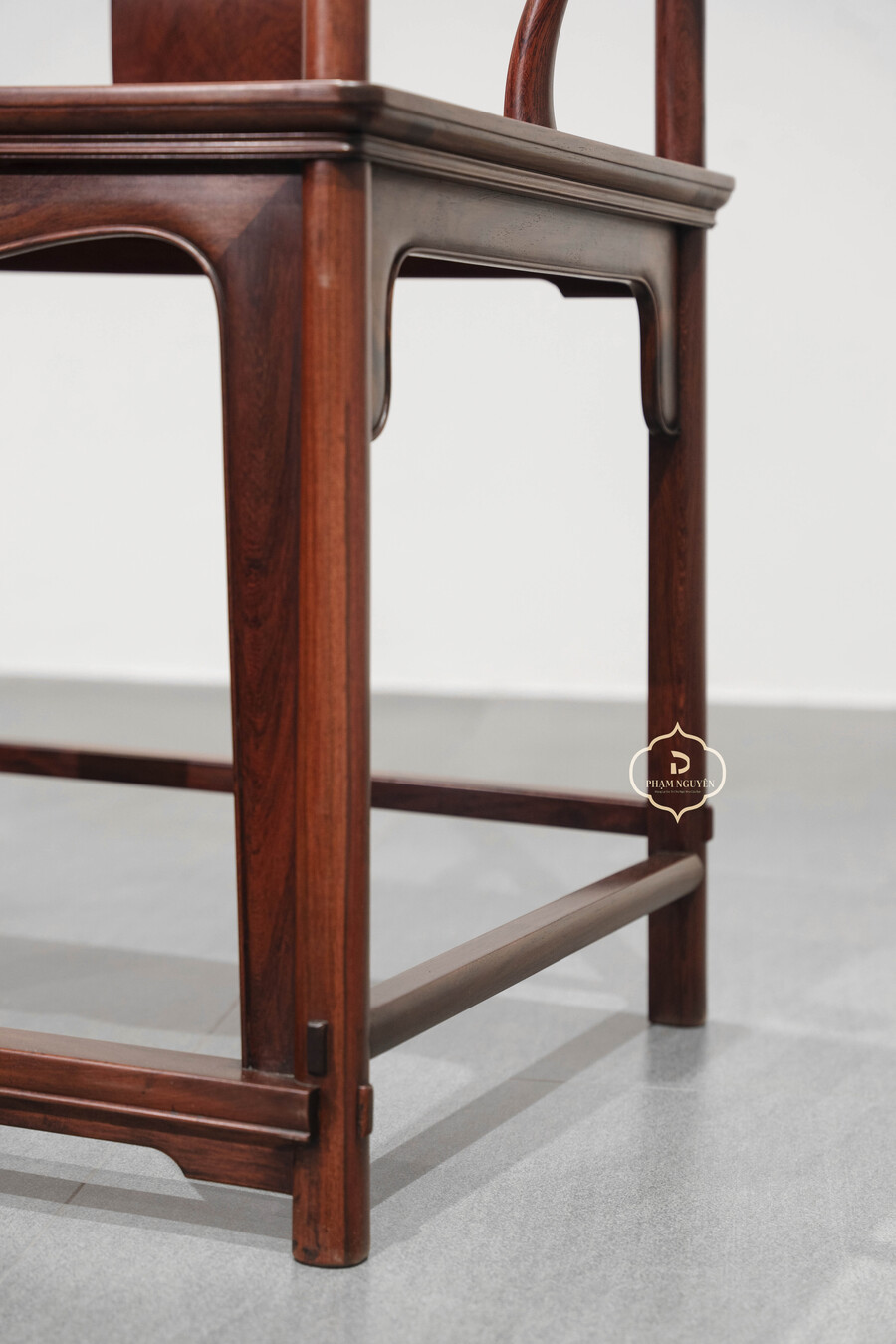 Ghế được hoàn thiện bằng kỹ thuật ghép mộng truyền thống, giúp kết cấu vững chắc, chịu lực tốt, hạn chế cong vênh và mối mọt theo thời gian. Chiều cao mặt ghế được tính toán hợp lý, mang lại trải nghiệm ngồi chuẩn, thư thái, đúng tinh thần ghế chủ trong không gian Á Đông.