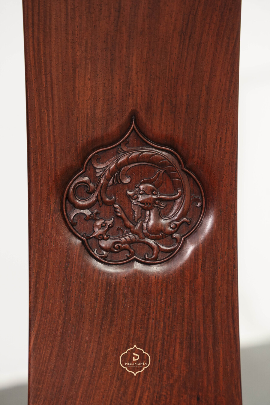 • Lưng ghế liền tấm chạm họa tiết, tạo điểm nhấn tinh tế
