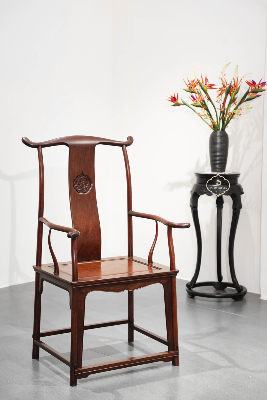 • Ghế chủ chế tác từ gỗ Cẩm tự nhiên, màu nâu đỏ trầm sang trọng