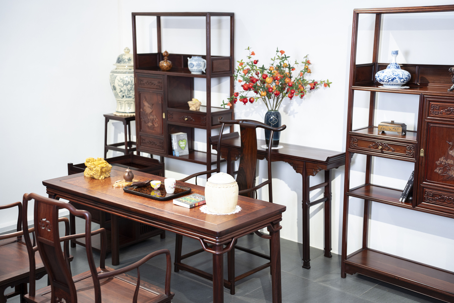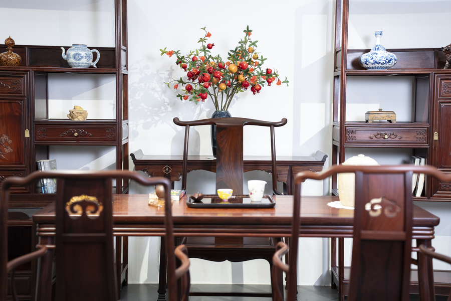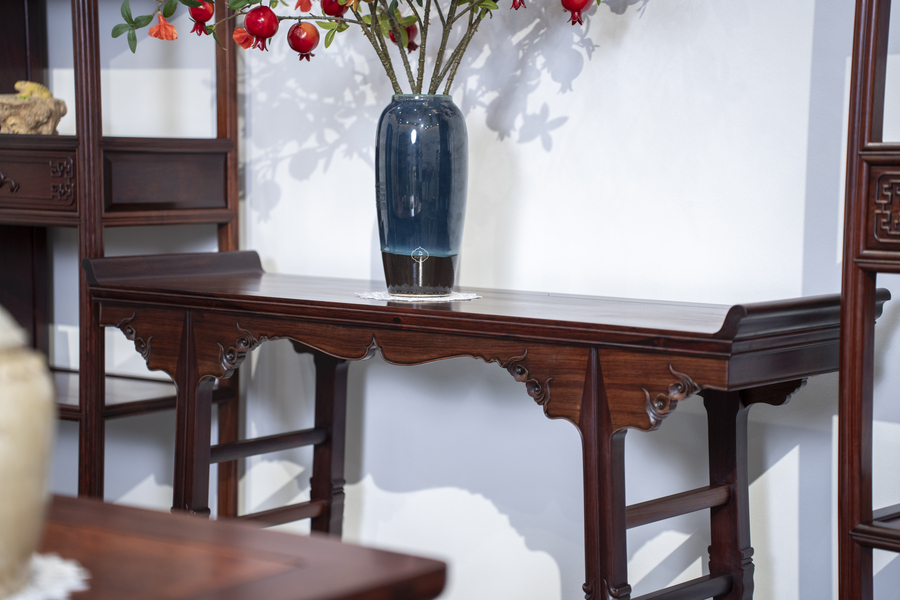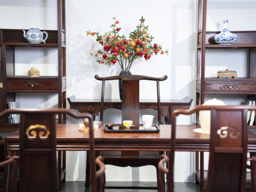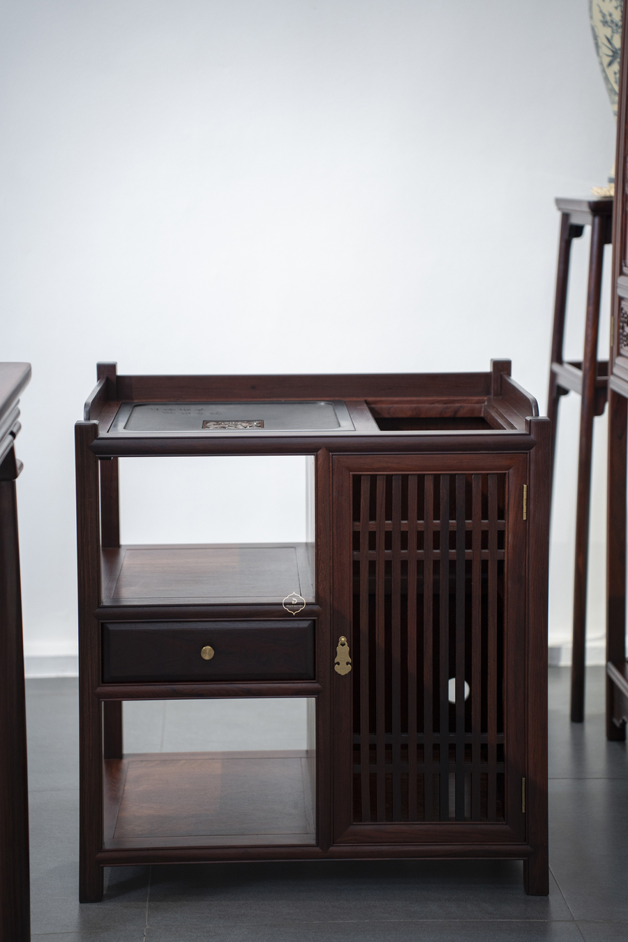 Tổng thể phòng trà gỗ cẩm không chỉ là nơi thưởng trà, mà còn là không gian tiếp khách, suy ngẫm và thể hiện gu thẩm mỹ của gia chủ. Phù hợp đặt tại phòng khách lớn, phòng trà riêng hoặc không gian sinh hoạt chung mang tính nghi lễ và tiếp đón trang trọng.